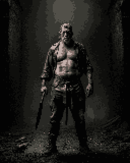 装いと装具: 血と、こびりついた汚れ。重たい、革のエプロン。 それは、工業の、労働の服の上に、重ねられている。 腰の、厚い革の帯。そこには、邪悪な、肉を断つ大鉈(マチェット)が、ぶら下がる。 彼は、滴る「ジューシーなモス(餌)」の袋と、暗い血の小瓶を、携えている。